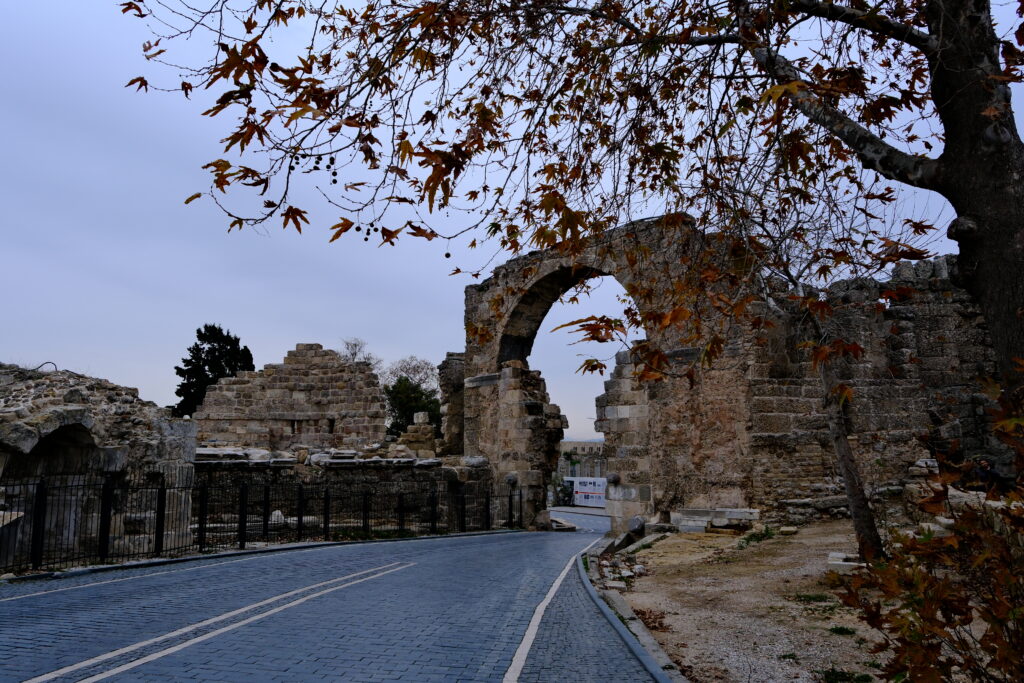 İçeride restaurant, cafeler ve butik dükkanların yer aldığı turistik ve sosyal bir yer olan Antik Side’de son ziyaretimde dikkatimi çeken şey etraflıca bir restorasyon çalışmasının olmasıydı. Tiyatro ve bazı alanlar ziyarete kapalıydı, 4 adet vinç ve kalabalık bir ekip yoğun biçimde çalışıyorlardı. Sezon hazırlıklarından ötürü Ord. Prof. Dr. Arif Müfid Mansel Müzesi ziyarete kapalıydı, ancak bazı heykel ve eserlerin sergilendiği diğer müze ziyarete açık. Bu iki müze kentin içerisinde yer alıyor, sadece girişleri ayrı olarak yapılıyor. Yani içeri girdiğinizde bu iki yere mutlaka uğrayın. Arif Müfid Mansel, ülkemizin yetiştirdiği ilk arkeologlardan ve 1947 yılında kazıları başlatan kişi; yanısıra Prof. Dr. Jale İnan, Mansel’in ardından kazı başkanlığı yapan ve Side’ye büyük emek veren bir diğer kıymetli hocamız.